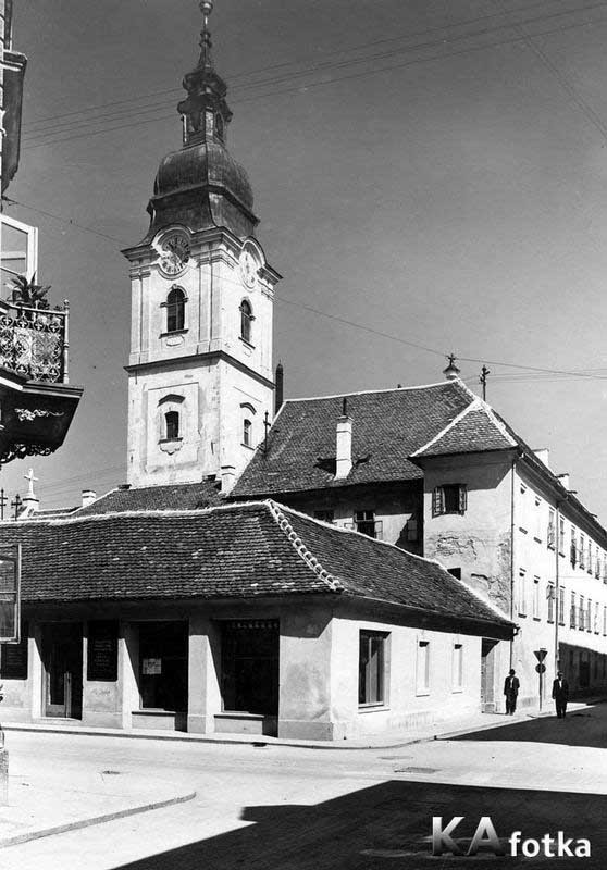 Opća obrtna – nabavno prodajna zadruga SOJ Karlovac 26. maja 1952. moli  Gradski narodni odbor  - povjerenstvo za komunalne poslove suglasnost za izdanje dozvole za adaptaciju trgovačkih prostorija u prodavaonicu na uglu Radićeve i Mažuranićeve ulice. Sa adaptacijom je sporazuman kućevlasnik Franjevački samostan u Karlovcu – gvardijan Gothard (r. k. t. župna crkva), pod uvjetom da se na krovu ne izvodi reklamna  ploča.  Zadruga je dobila garanciju desetgodišnje sigurnosti  da  u tom periodu ne može od strane Narodnog odbora uslijediti otkaz ili premještaj. Prema zatečenom stanju lokal se sastoji iz jedne prostrije vel 12, 60  x 4,70, visine 3,15 m. Duža fronta je u Radićevoj ulici a kraća u Mažuranićevoj. Strop lokala je grednik sa oplatama, krovište dvostrešno prekriveno biber crijepom. Adaptacija se sastoji u izmjeni veličine otvora za izloge. Osim toga na cijeloj dužini fronte u Radićevoj ulici i na dijelu od ugla do završetka izloga u Mažuranićevoj na visini od pločnika do novih nadvoja radi proširenja  kodne linije javnog nogostupa uz zgradu odklesat će se zid u debljini od 15 cm, kako bi se postojeća isturenost zgrade preko gradjevnpg pravca smanjila za polovicu. Lijevo od ulaza bila bi prodavaonica sa priručnom garderobom, ručnim praonikom, policama, tezgama i blagajnom, a desno prostor za izlaganje obrtničkih proizvoda. (Uporaba WC-a u susjednoj zgradi). Prilikom očevida 11. VI 1952. odustalo se od okrzavanja sadašnjeg konstruktivnog uličnog zida radi oslabljenja homogenosti zida. Umjesto tri otvora prema Radićevoj izvest će se još jedan otvor, a novo pročelje izvelo bi se u terraboni ( projektant Zlatko Šterk, izvođač poduzeče „Temelj“). Kad posjećujete galeriju Zilik koja se već dugo nalazi ovdje, malo se osvrnite, primijetit će te  preuzak   javni nogostup uz zgradu. (Biserka Fabac)