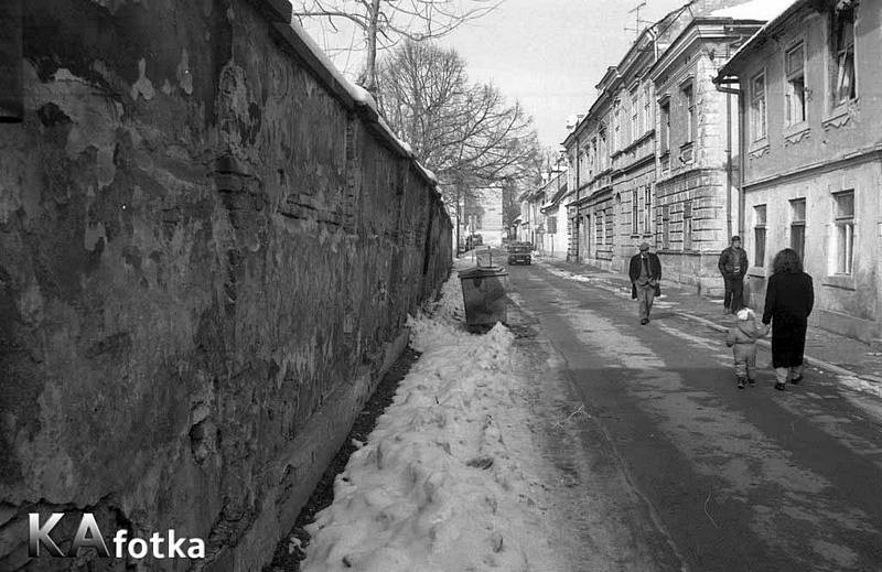 Ulica koja se do 1881. g. zvala "Gospodska " (Herrengasse), jer je jedno vrijeme bila rezidencijalna četvrt. U gusto izgrađenim malogradskim palačicama i baroknim jednokatnicama stanovali su ljudi bogatijeg obrtničkog sloja. Prizemlja su bila u poslovnoj namjeni, dvorišna krila u gospodarskoj, a katovi stambeni prostori. Ovaj zid na lijevoj strani ulice ograđuje prostor dvorišta "Oružane" sve do 1996. g., a podignut je na prostoru desetak drvenih građanskih kuća koje su stradale u požaru u prvoj pol. 19. st. S razvojem grada imućniji građani sele u atraktivnije dijelove Karlovca (Veliku promenadu, Senjsku, Riječku, Domobransku ulicu) a ovdje se nastanjuju obitelji skromnijeg imovnog stanja s brojnom djecom. Zbog toga je Šimunićeva ulica, kao i dio Haulikove, Kukuljevićeve - prema R. Radovinoviću, „Stari Karlovac ulice kuće ljudi“ prozvana „Kineskom četvrti“, a novinar D. Plevnik dodaje i Frankopansku, Prešernovu, Karasovu , uključivo Banjavčićevu i dio Križanićeve. Osim toga D. Plevnik piše u knjizi „Moja povijest Karlovca“ da je sinonim za „Kinesku četvrt „ bio Drveni plac. Vjerojatno je mislio na period prije velikog požara 1878. kad su izgorjele gusto sagrađene drvene kuće na današnjem trgu, osim jednokatnice, danas Haulikove 18. (Biserka Fabac)