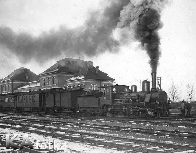 Lokacija za kolodvor, u Drežničkom polju, zapadno od ceste za Zagreb, odabrana je 1863.g. jer je iste godine 1. lipnja željeznica stigla do Karlovca, a prvi vlak Zagreb - Jastrebarsko - Karlovac stigao je 01. 06. 1865. na privremeni kolodvor u općini Banija. Od tada slijedeća tri desetljeća lokacija kolodvorske zgrade postat će predmet spora između Banije i Karlovca. Karlovčani su svoj kolodvor željeli imati na desnoj obali Kupe, na prostoru između Senjske i Riječke ulice. Svjetlo 5. ožujka 1893. piše: "Koliko su Karlovčani išli u Zagreb tražiti da se kolodvor preseli u grad, toliko su Banijanci išli da ostane na Baniji“. Banijanci su na kraju prošlog stoljeća politički bolje stajali u Banskim dvorima nego Karlovčani, a osim toga Karlovačko poglavarstvo nije imalo novca za gradnju, pa su pomalo odustajali i oni najuporniji zagovornici te ideje. "Ravnateljstvo kraljevskih ugarskih državnih željeznica“ godine 1899. odobrilo je za gradnju novog kolodvora 460.000 forinti. Karlovački glasnik marta 1899. g. piše da će građevina biti duga 68 m, široka 8,5 m, da se planira dovršiti u tri godine i da će imati 10 tračnica. Natječaj za gradnju raspisan je 1900., a iz Obzora 25. rujna 1900. saznajemo da su posao gradnje dobili zagrebački poduzetnici i arhitekti Hönigsberg i Deutsch, prema projektu Ferenza Pfaffa. Kolodvor je dovršen 1903. a poslije zagrebačkog najljepši je u Hrvatskoj. Jedan je od najstarijih i najočuvanijih spomenika tehničke arhitektonske baštine u zemlji. Kad je sagrađen bio je najveća postaja na pruzi Zagreb - Rijeka, a tijekom vremena postaje važno željezničko čvorište - izvor "Svjetlo“ 1997. (Biserka Fabac)