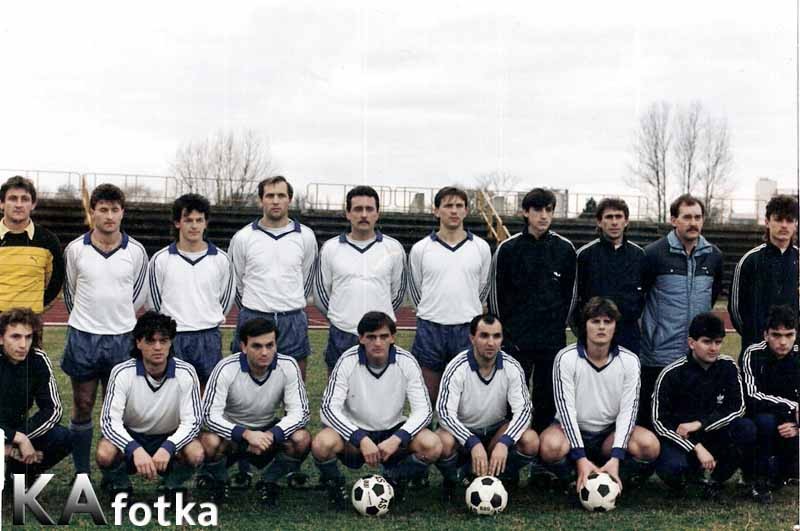 NK Karlovac 1988. Stoje: Komadina, Vuljanić, Mamić, Furač, Bukva, Filipčić, Vrbanić, Kahriman, maser Palajsa, xy, čuće, Pavić, Popović, Malobabić, Perčec, Z.Janjanin, Sabljić, D. Kresoja i Cerovac