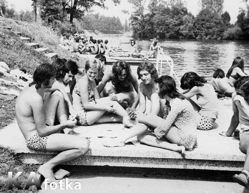 Kupanje na Korani 1974. - Foginovo kupalište: Plevnik, Smoljanović, Cvitković, Drkelić, Valica, Pizent, Kovačevski