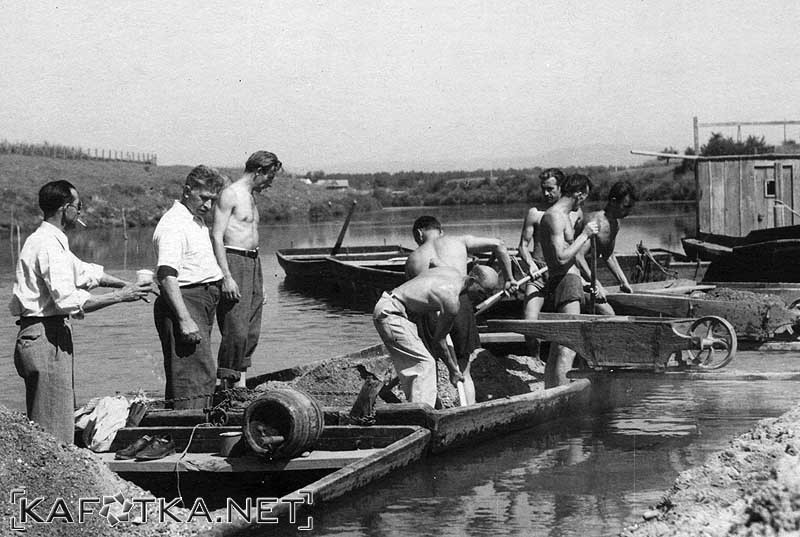 Vađenje pijeska 1950. na Kupi za izgradnju Auto moto društva