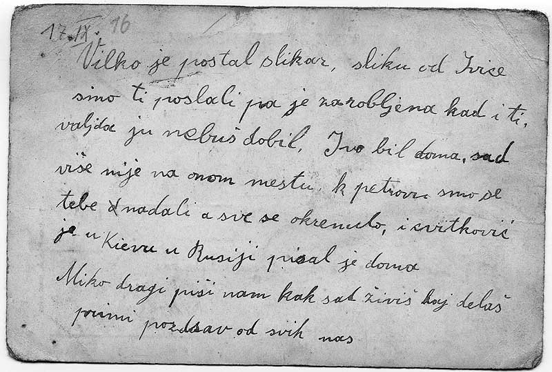 Dopisnica za ratne zarobljenike - poslana Nikoli Težaku pripadniku 26. domobranske pukovnije koji je bio u zarobljeništvu u Rusiji