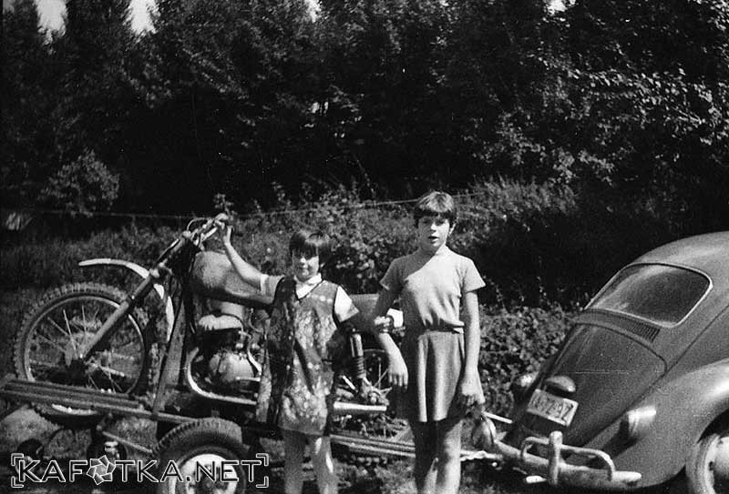Erna Turk i prijateljica Sonja u dvorištu Kukuljevićeve 6 (Dom umirovljenika), Modrušanova kuća, slikano je negdje 1965./66. a motor u pozadini je od Lene Šoštarić