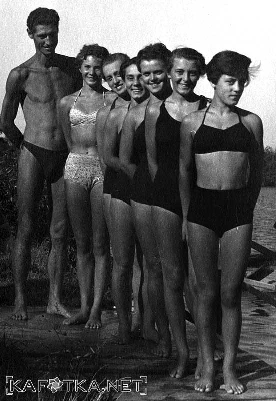 Plivačice Plivačkog kluba Željezničar sa trenerom Zdravkom Belanom na Korani 1953. godine