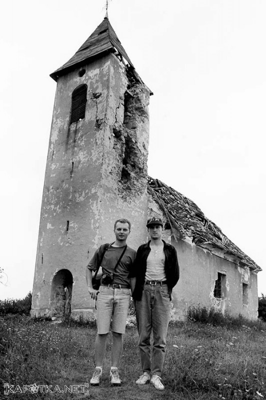 Goran Gerovac i Dinko Neskusil uz Crkvu Sv. Doroteje 1991.