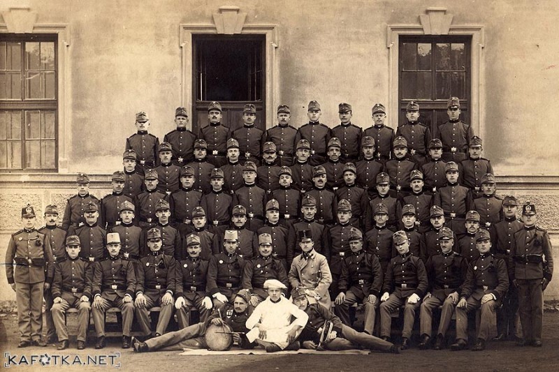 "Pješačka kadetska vojna škola za dočasnike“ u Karlovcu 1914. godine - (Ivan Derganc stoji četvrti zdesna u najdonjem redu)