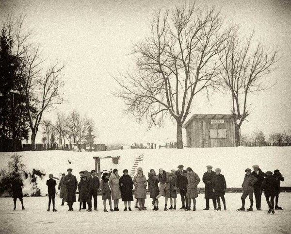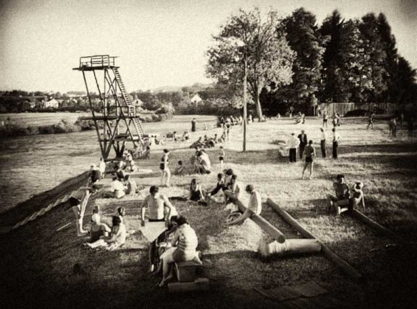 - Sad sam skrenula, kaj smo ono pričali, da kako je nastalo kupalište. Imam slike, valda u Karlovcu, kak se sve to gradilo. Tata je, je jasno, kad banaka dizao kredite… Vidite, ovo je to kupalište, tata je te godine kupio zemlju i po zimi se, vidite, tu klizalo. …A ovo je već bilo kasnije i to je bil dobar drveni trambulin. A ovaj kaj su posle napravili…Tatu nisu hteli slušati – tvornica Ilić imala je branu koja mogla zatvoriti i otvoriti i vodostaj je uvijek bio kako treba. Kod su gradili novu skakaonicu nisu hteli slušati tatu da zatvore branu pa da vodostaj bude viši. Napravili su prenisku i više se nije moglo takmičiti.