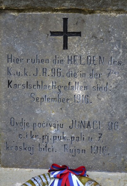 U vremenu 5. i 6. Sočanske bitke na Krasu je moguće vidjeti, barem možda dijelove 96. p.p.  na Tirolski fronti kod mjesta Kostensin (Costensin) u Italiji, kod Trbiža (Tervisio). Na fotografiji je spomen ploča sa natpisom u njemačkom jeziku (prijevod):