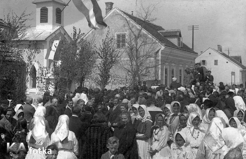 Izuzetno rijetka fotografija Blagoslov Rakovačke kapelice RANJENOG ISUSA - Rakovac 56 - kuća E. Manka Savineka sa zavjetnom kapelicom Ranjenog Isusa. Kapelica je nestala u poznatom vihoru 1948. Kuća Manka Savineka nešto kasnije, kao i cijeli taj dio Rakovca. Razlog je bio gradnja karlovačke obilaznice, čardaka koji zbog plitkovizionarske ideje, presijeca Karlovac na pola, umjesto da ga zaobilazi, izvor: Kameleon 2007. godine; Manko Savinek - najpoznatiji rakovački medičar, licitar i voštar, rođen je na Turnju 1884. g., izučio je zanat kod Lukinića na Gazi (bio je njegov kalfa ), osamostalio se 1916. i do smrti 1952. vodio vlastiti obrt. Ženio se dva puta i s nijednom ženom nije imao djece. Zbog toga se navodno zavjetovao i pored kuće podigao kapelicu u kojoj su se povremeno održavale mise, ali je zbog malog prostora većina ljudi ostajala vani. (Kod Manka Savineka medičarski zanat izučio je njegov brat Viktor, prije toga kolar, i otvorio vlastiti obrt na Riječkoj cesti; zatim Ivan Labaš na adresi Rakovac 23, ali i današnji karlovački licitar Tonček Prstec. (Biserka Fabac)