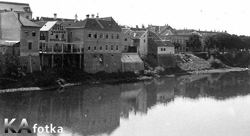 Začelje kuće trgovačke obitelji Turk, s vidljivim stubištem koje se otvara prema obali Kupe svjedoči o nekada vrlo značajnom trgovačkom plovnom putu rijekom Kupom, koja je bila najveći doprinos ekonomiji grada u 19. st. Vidi se i uglovnica Petra Sljepčevića i dio fasade Sinagoge, čije mjesto kasnije zauzima neboder... kao šaka u oko unutar stare jezgre. (Matej Mihalić)