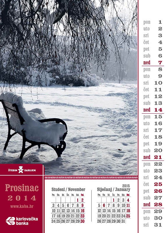 Kalendar za 2014. godinu "Karlovački parkovi i rijeke“ u izdanju Karlovačke banke nastao je u suradnji sa web stranicom www.kafotka.net. Karlovačka banka među prvima je prepoznala vrijednost web stranice www.kafotka.net i sponzor joj je od njenog nastanka.
