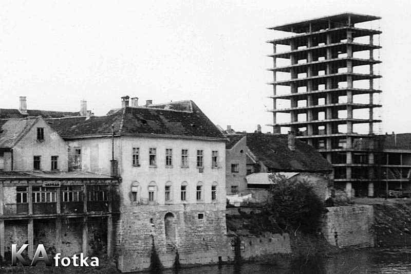 U Šebetićevoj ulici, na k. č. 640, do 1959. godine nalazila se židovska sinagoga – „Templ“. Dokument o rušenju sinagoge i uglovne kuće trgovca Petra Sljepčevića ne postoji u nijednoj ustanovi tipa: Državni arhiv u Karlovcu ili Zagrebu, Gradskom muzeju, Konzervatorskom odjelu itd… U razgovoru s starim Karlovčana dobivene su različite godine. Autorica teksta koji mi je poslužio kao izvor, priklonila se iskazu gđe. Đurđice Lipovščak koja je navela godinu 1959., povezujući rušenje „Templa“ s recitalom – Iz Goranove „Jame“ koji se održao u sklopu „Goranova proljeća“ (u sinagogi su se održavale različite priredbe). Prema njezinim riječima do rušenja je došlo dvadesetak dana nakon toga. Istu godinu spomenula je gđa. Bačić iz Gradskog muzeja u Karlovcu, te prof. Vladimir Peršin. Gospodin Matasić, koji je bio općinski službenik od 1956., te je osobno vodio u „Templ“ komisiju koja je objekt procijenila „ruševnim“, događaj smješta prije 1960. g. Godinu 1959. / 1960. uzeli su kao vrijeme rušenja još i Zdenka Karan i Zoran Živković iz Gradske knjižnice „I. G. Kovačić“ u Karlovcu, dok je prof. Mariji Vrbetić bila bliža 1960. g. Zanimljiv podatak daje Branka Sansović (r. Starčević) koja je s obitelji živjela u uglovnici uz „Templ“. Naime, budući da je kuća trebala biti rušena (i jest bila rušena dok su oni još u njoj stanovali) njezin je otac dobio rješenje za stan u ulici I. G. Kovačića: Datum: svibanj 1961! Ubrzo se počelo s izgradnjom novog objekta. Projekt za gradnju izrađen je u servisnim radionicama DSUP – a NNH u Zagrebu, dok je ugovor sa SUP – om Karlovac sastavljen 12. 03. 1961. Rješenjem Narodnog odbora općine Karlovac br. 05 / 3 – 1817 / 1 - 1961 od 18. 03. 1961. odobrena je lokacija za gradnju SEDMEROKATNE upravne poslovne zgrade, a koje je rješenje pod br. 05 / 3 – 1817 /2 - 1961 od 03. 10. 1961. izmijenjeno, time da se odobrava lokacija za 10 – katni objekt s nadgrađem. Odobrenje za izgradnju donio je Odjel za komunalne i stambene poslove NOO Karlovac rješenjem br. 05 / 3 – 4688 / 1 -1962. od 11. 06. 1962. Investitor za ovu gradnju bio je SUP Karlovac, a izvođač radova Režiski odbor SUP – a Karlovac. Rješenjem Općinske skupštine Karlovac od 14. 11. 1963. predan je ovaj objekt od strane Kotarske skupštine SUP – a Karlovac, Skupštini općine Karlovac. Premda je pbjekt prvotno zamišljen kao sedmerokatan, konačni projekt izrađen je za deseterokatnu zgradu s nadgradnjom. Uz taj objekt, kao njegov sastavni dio, zamišljen je i jedan visine dva kata, koji zauzima veći dio k. č. 639 i orijentiran je prema sjeveru, tj. prema Kupi. Radovi na gradnji nebodera prekinuti su 24. kolovoza 1963., a ponovno nastavljeni na intervenciju građevinske inspekcije SO Karlovac od 21. svibnja 1964. Radovi na betoniranju zaključne ploče dovršeni su 20. lipnja 1964., a 1965. je postojeći „kostur“ nebodera konzerviran kako bi se sačuvao od daljnjeg propadanja. (Karl. tjednik, 7. listopada 1965., str. 8 - 9). S gradnjom se nastavilo tek 1969., a izvođač je bilo Građevno poduzeće „Tempo“ iz Zagreba. Prema ugovoru od 18. 09. 1968. G. P. „Tempo“ kupuje od SO Karlovac nedovršenu zgradu s pravom korištenja zemljišta na lokaciji Karlovac, Šebetićeva ulica bb, upisano na k. č. 1410 nove izmjere. Rješenjem komisije za pregled tehničke dokumentacije usvaja se idejni projekt adaptacije postojećeg 11 – katnog armirano – betonskog kostura predviđene upravne zgrade, u poslovni objekt. Odjel za upravno pravne poslove SO Karlovac izdaje G. P. „Tempu“ Zagreb Rješenje o odobrenju za izgradnju br. 02 / 3 – UP / I – 697 / 1969 od 19. 03. 1969. Objekt je završen 1970. g. Općinski zavod za komunalne poslove i urbanizam donosi Rješenje br. 20 – 4 – UP / I – 1631 / 1970 kojim se odobrava G. P. „Tempu“ Zagreb upotreba stambeno – poslovnog objekta „Kupa“. (Podatke kao i pristup tehničkoj i projektnoj dokumentaciji „nebodera“ gđa. Ines Rogić zahvaljuje ljubaznosti gđe. Ljubice Dragaš iz G. P. „Tempo“ u Karlovcu; članak u „Svjetlu“ 1 - 2, 2001. g.) - Biserka Fabac