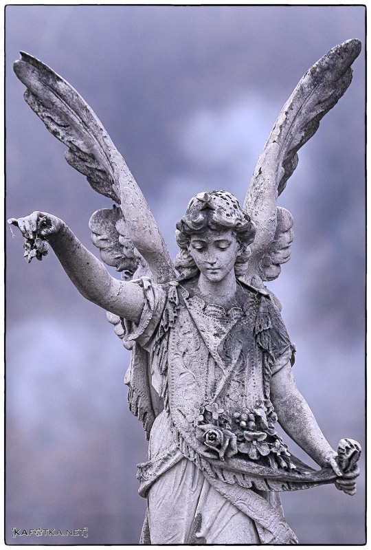 "Raskriljeni anđeo" - skulptura na istočnom dijelu katoličkog groblja, pretpostavlja se da je djelo klesarske radionice Rubeša ("Karlovačka groblja", R. Radovinović i Z. Gerber.)