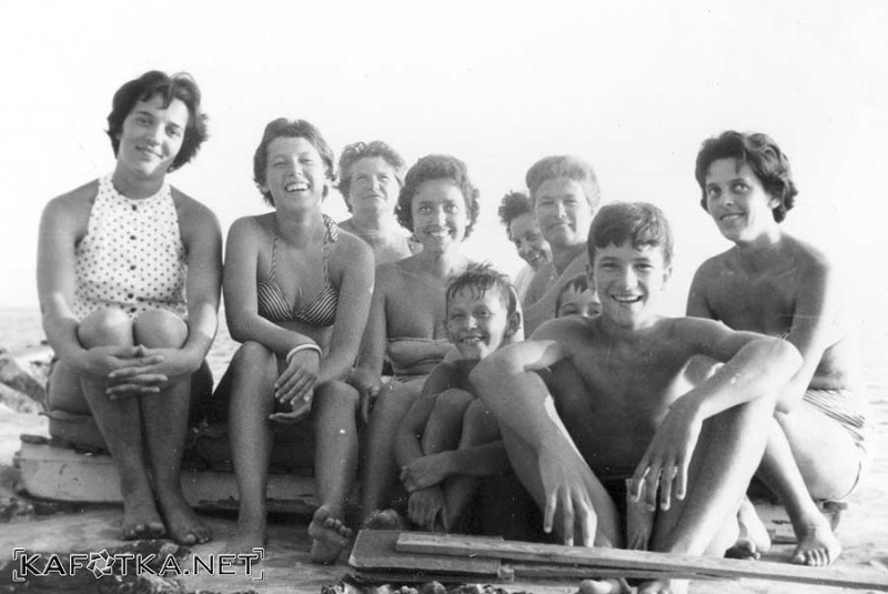 Selce 1959.godine - Slijeva nadesno: 1. red - Darko Županac, Veljko Karusa, 2. red Tanja Brekić, Seka Stern, Ana Rebernik, gđa Karusa, Olga Brekić, 3. red, skroz iza - gđa Lapanja i zadnja desno Ana Neskusil