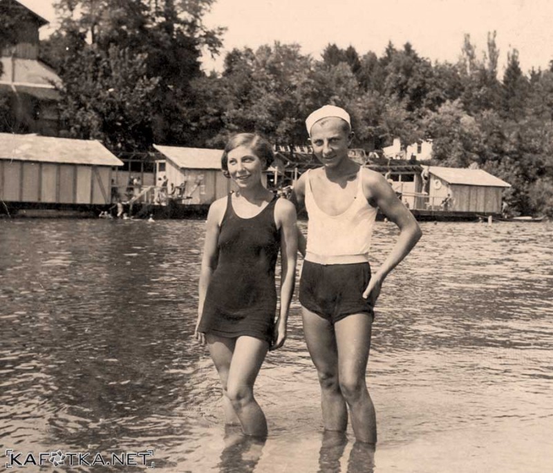 Karlo Neskusil i sestra Zora na kupanju na Korani - u pozadini Kupalište
