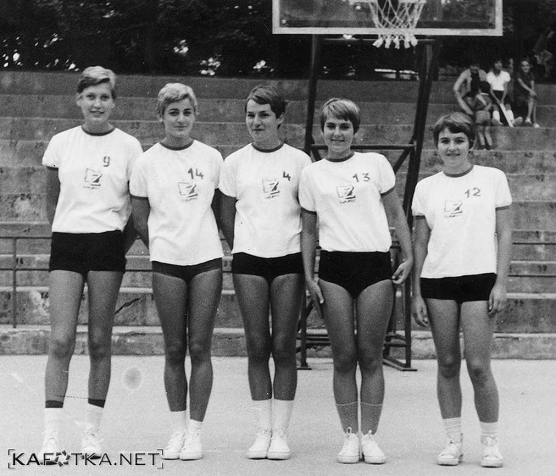 Ženska ekipa Košarkaškog kluba Željezničar 1968. godine: Mirjana Brkić, Mira Podvorac, Branka Đukić, Asja Grcić i Senada Zulić
