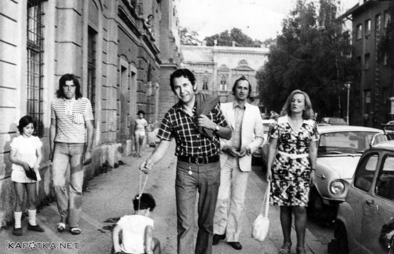 Vraniczanijeva ulica 1973. godine - Ljubo Jelčić na špagi vuče autić sa Nikolom Matovinom (okrenut leđima), u pozadini (desno) Oliver Mlakar i Marija Sertić