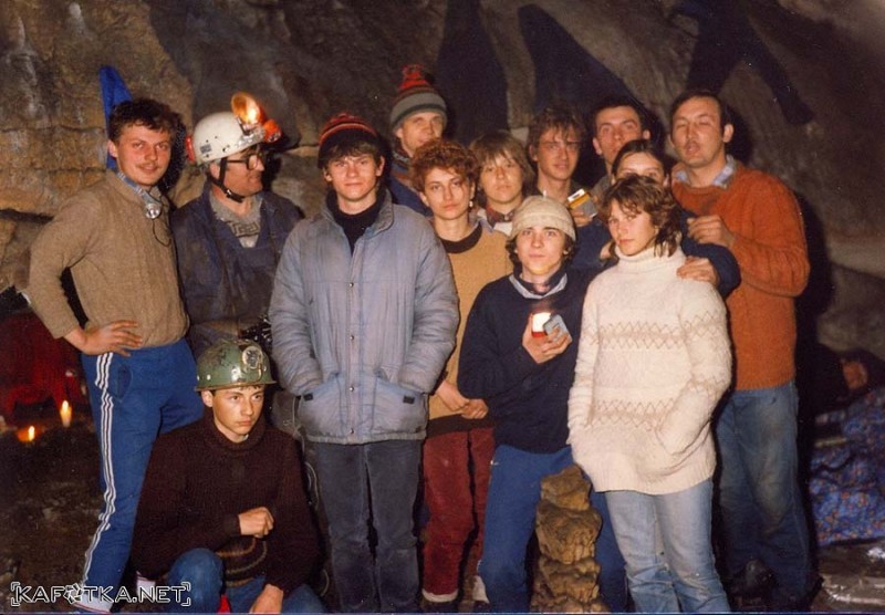 Speleološka škola SOPD Dubovac, travanj 1983. godine, Jopića pećina. S lijeva na desno: Hrvoje Korais, Vlado Božić, Slobodan Božić, Vanja Goršić, Dubravko Magdić, Alenka Lavrinc, Sanja Đarmati, Predrag Petojević, Bruno Konjević, Igor Jelinić, Davorka Bekić, Željka Štedul i Zvonko Đarmati.