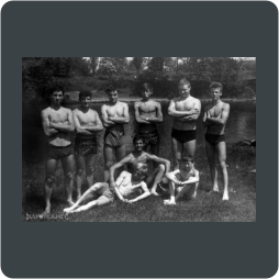 • Nikola Lulić, rukometaš, vaterpolit i član Rakovačke klape, snimljen krajem 1950-tih godina.