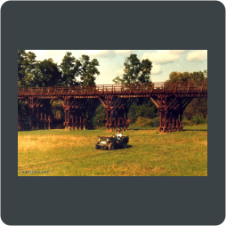 • Drveni most na Korani 1986. godine i Den Klemenčić kako vozi američki vojni jeep marke Ford proizveden 1940